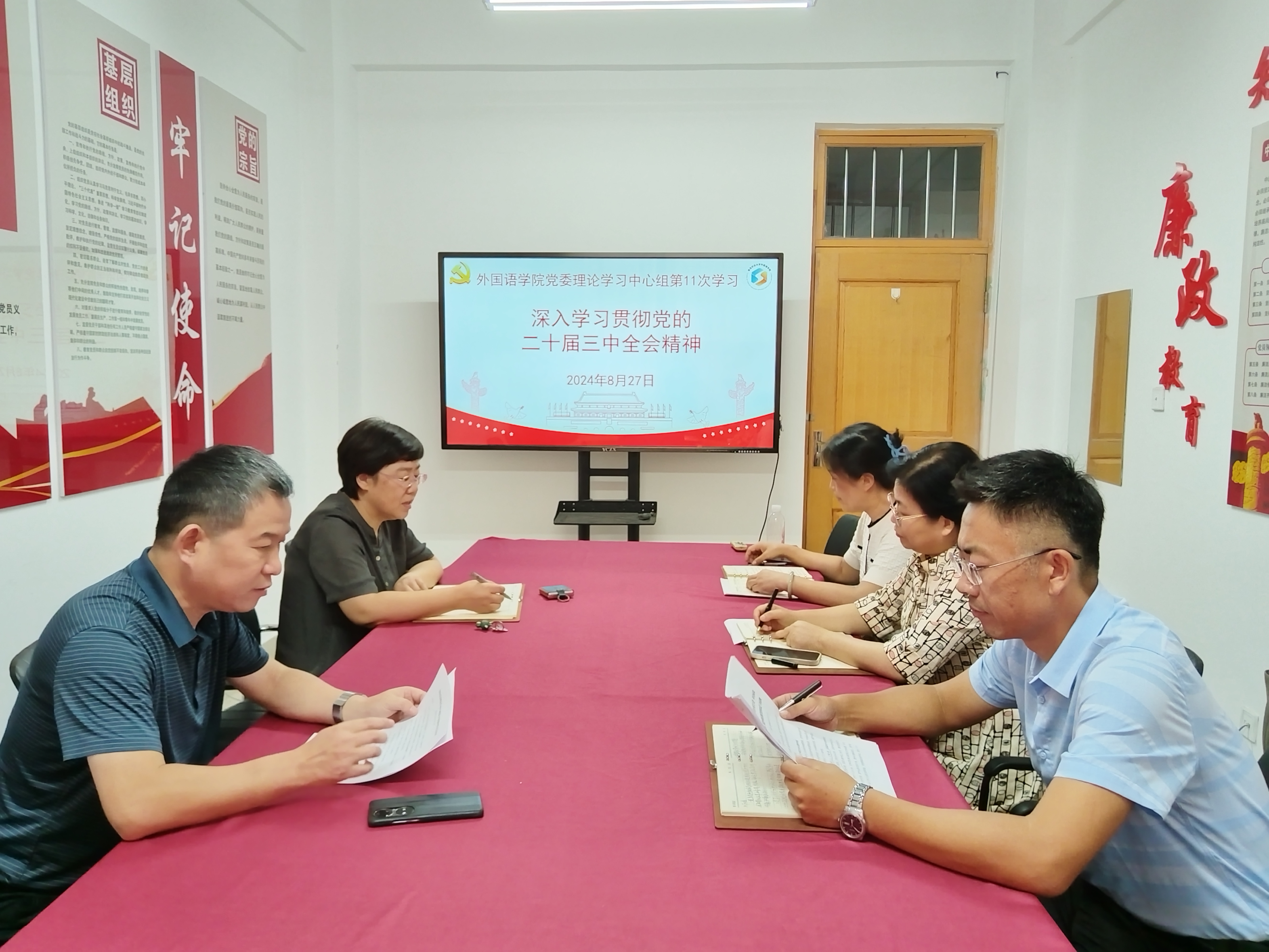 8月27日,William威廉英国于文经楼C206组织开展党委理论学习中心组集体学习,专题学习党的二十届三中全会精神。会议由William威廉英国党委书记王效仿主持,学院党委班子成员参加。