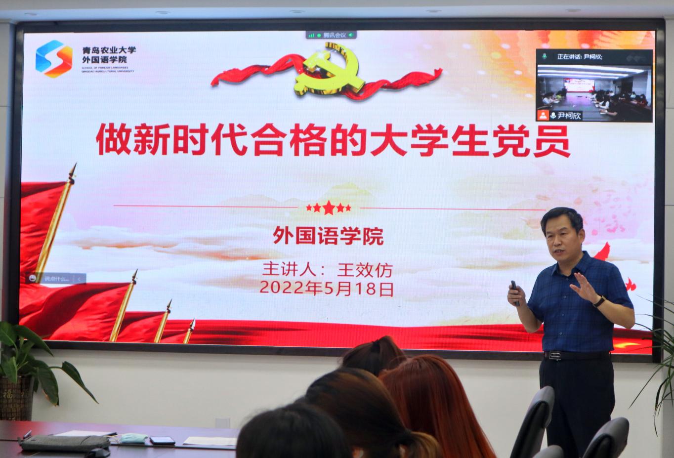 大会在庄严的国歌声中拉开帷幕。党委书记王效仿以“做新时代合格大学生党员”为题,开讲本次党校培训的第一课。他先带领学员们学习《关于进一步做好发展党员工作的意见(青农大组字[2021]17号)》文件精神,并从合格大学生党员的标准、大学生入党积极分子容易存在的几个问题、如何成为新时代合格的大学生党员三方面进行详细讲解。王效仿立足于党性修养,并结合自身经历强调,广大积极分子和发展对象要拥有正确的政治立场和政治观点,同时具备政治敏感性和政治鉴别力,看问题的视角要全面,需端正思想态度进行学习。他还鼓励学院各位积极分子和发展对象们带动周围同学一起进步,并在勇于斗争中砥砺入党初心。