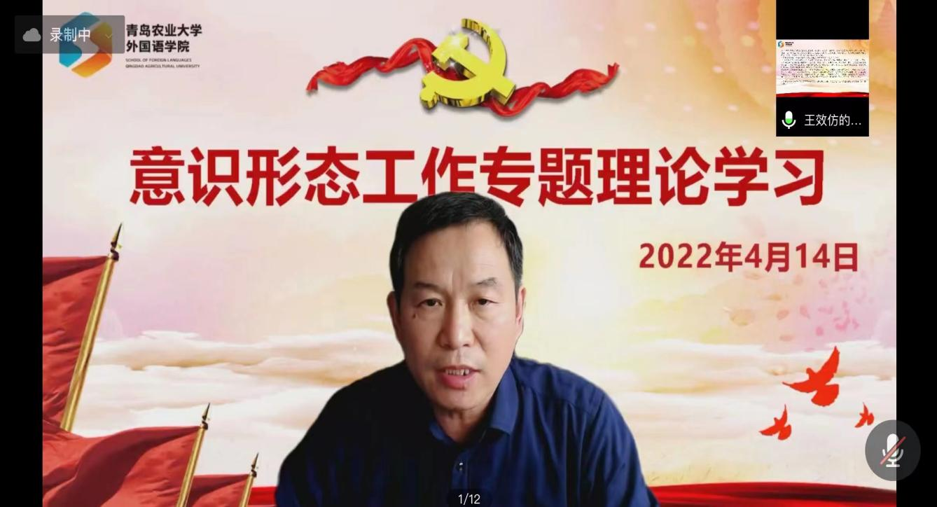 会上,王效仿带领全体教师学习《中国共产党领导是中国特色社会主义最本质的特征》《山东高校意识形态工作负面清单(2022年)》,并对重点内容作了强调和解读。