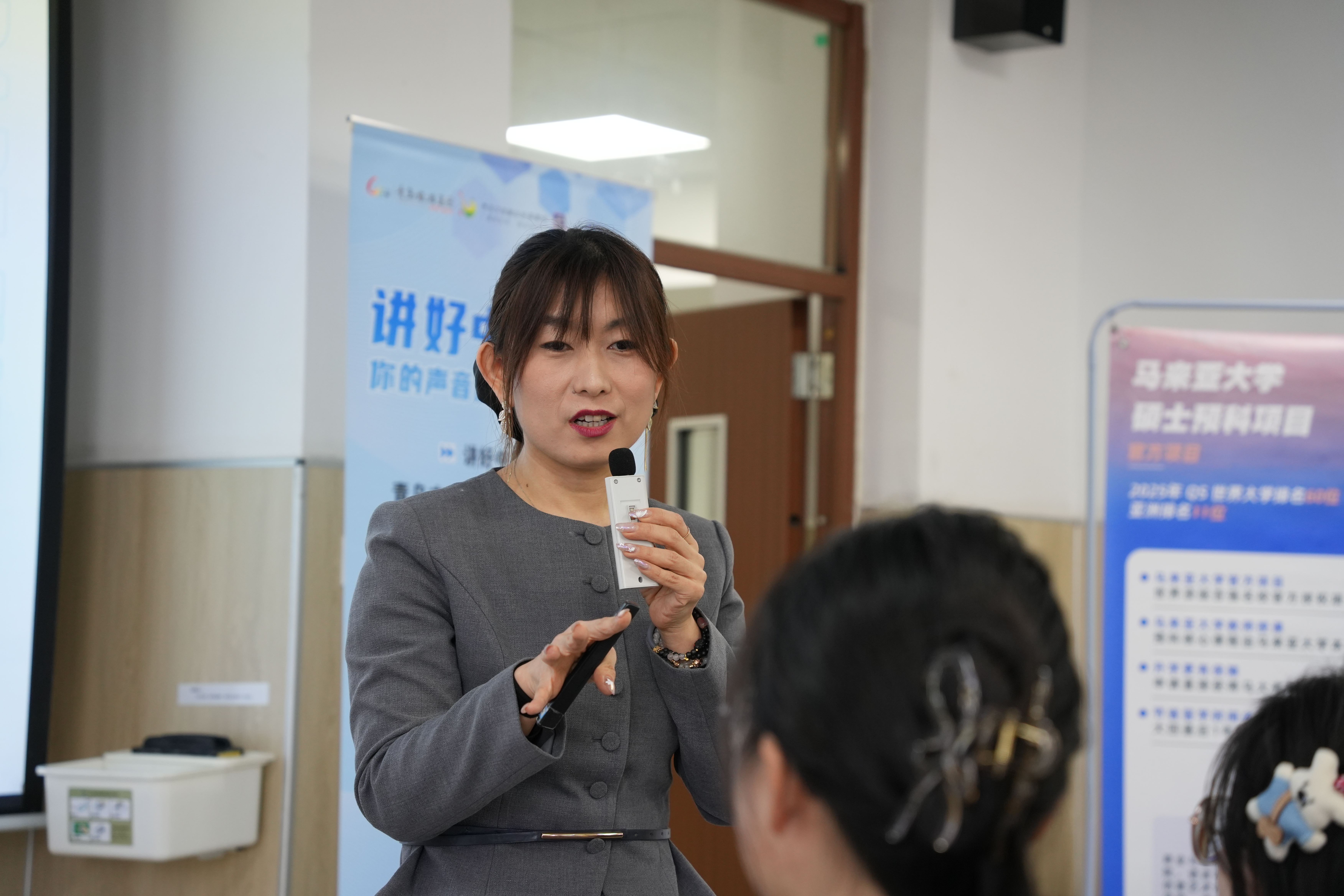讲座中,梁世芳凭借丰富的指导经验,为同学们介绍了比赛的相关要求。从一个优秀演讲视频示范出发,分享了让演讲、内容更具吸引力的技巧,为同学们解答“如何从演讲小白到表达精彩”等问题,让同学们在英语视频创作大赛更有方向和信心。