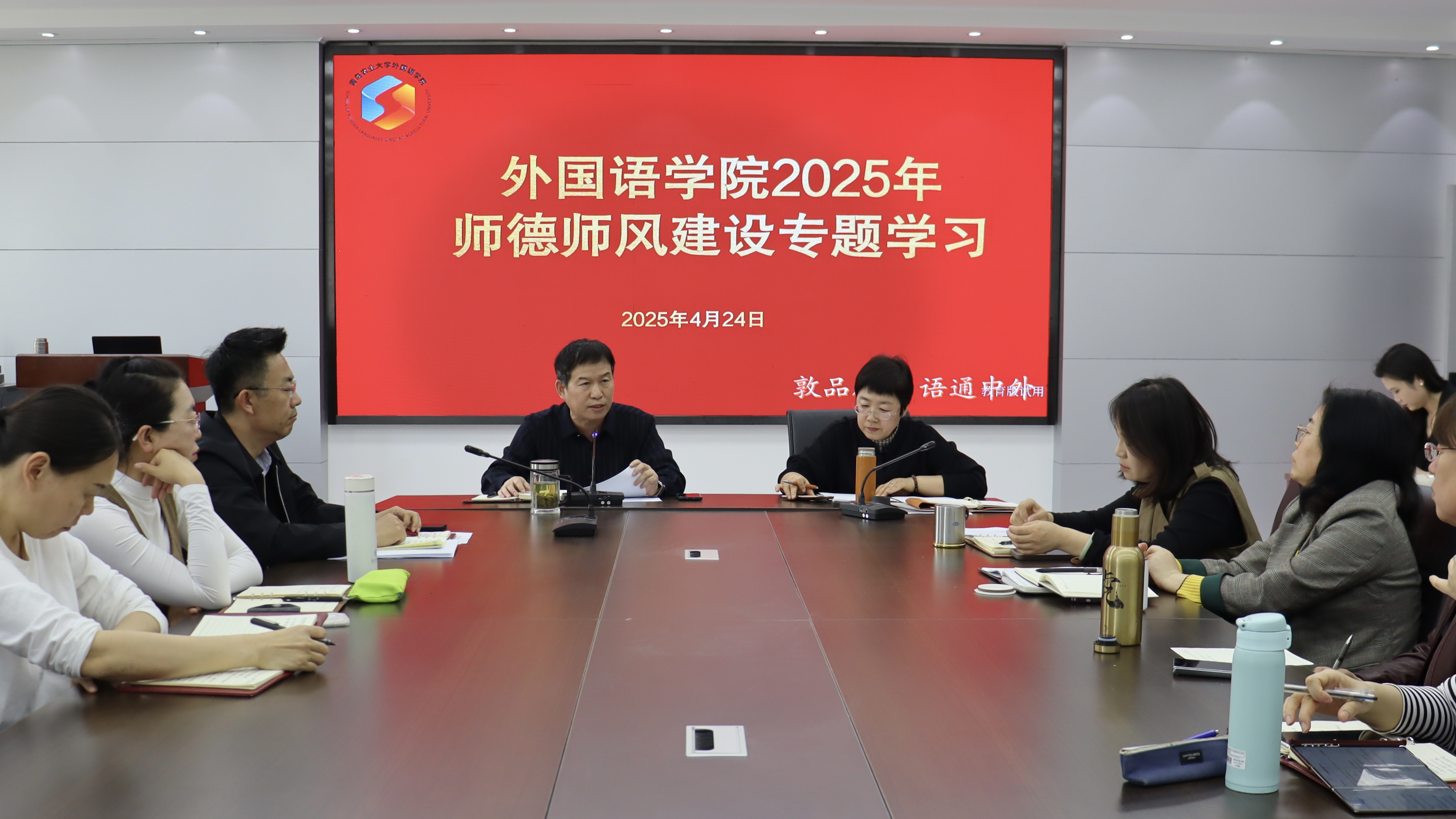 最后,会议集体学习了教育部关于高校教师师德禁行行为“红七条”的相关要求,强调全体教师必须严守师德底线,坚决杜绝损害国家利益、违背党的路线方针、政策、学术不端、违规兼职、徇私舞弊、收受财物、师生关系失范等行为。