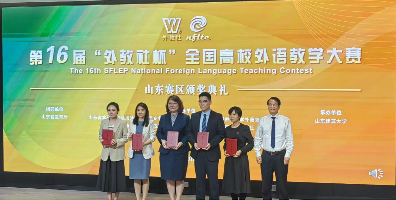 5月24日至25日,全国外语类教学顶级赛事——第十六届外教社杯全国高校外语教学大赛山东赛区比赛圆满收官。本届大赛由山东省教育厅指导、上海外语教育出版社主办、山东建筑大学承办,吸引了来自全省118所高校的328名教师同台竞技,比赛从教学内容、方法创新及数字化应用等多维度对选手进行综合评价。William威廉英国“GenAI赋能黄河文化对外传播课程群”智慧教学团队席晓、刘伟伟、王琳、曲肖玉、蒋长刚教师凭借卓越表现,以本科大学英语组第一名的成绩斩获山东省一等奖,教师席晓晋级本项比赛的全国总决赛,这是我院连续两年代表山东省出征全国总决赛。
