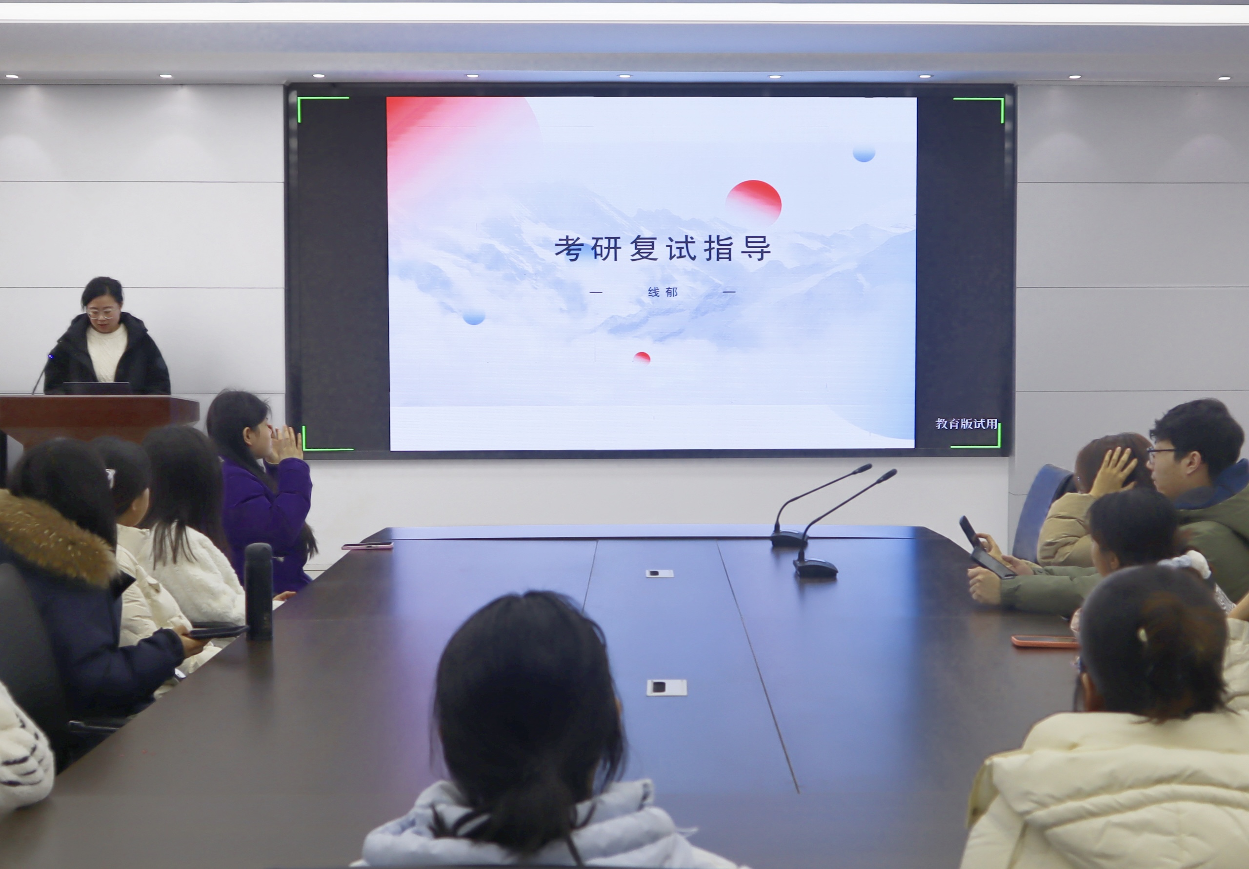 会议采用线上线下相结合的方式,内容涵盖了复试流程、面试技巧、导师选择、材料准备等多个方面。徐玉凤从自我介绍、难题应对、考研调剂等方面进行了详细指导,鼓励同学们认真备战复试,积极参与调剂。左燕茹则从导师选择、应试技巧等方面入手,强调了着装得体、选择适合导师的重要性。线郁围绕复试基本流程、联系导师方式、简历书写格式等进行了详细介绍,并现场解答了学生的疑问。