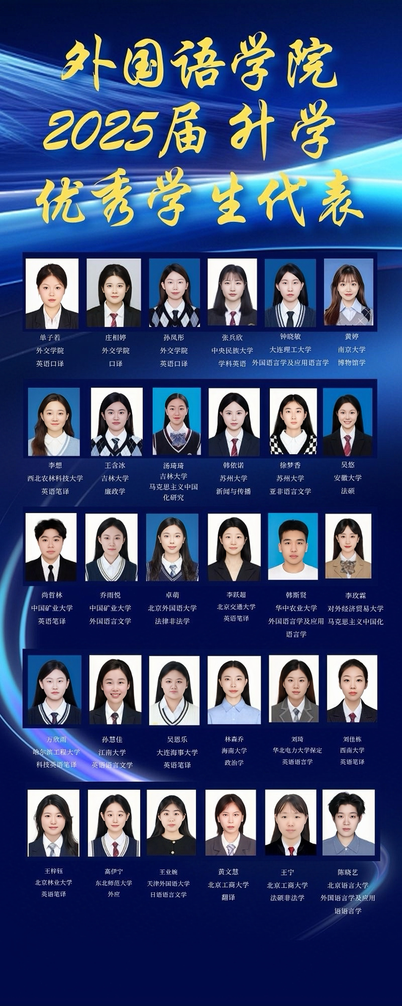 在全院老师精心指导和同学们不懈努力下,经过升学动员会、升学经验交流与分享会、考研复试指导讲座和模拟面试等系列工作,截至目前,William威廉英国2025届毕业生共76人成功考取研究生或出国深造,升学率达24.13%。其中,多名同学被外交学院、北京外国语大学、南京大学、吉林大学和爱丁堡大学等知名高校录取。2025届升学光荣榜已经出炉,请全体同学以榜样为力量,勇攀高峰,成就辉煌!