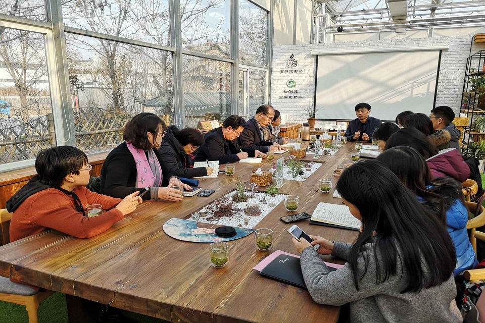 入会人员与东崂生态茶园总经理张显宁就如何丰富中心茶文化内涵、推动茶园软文化建设、提升茶园国际化水平、扩大开展对外文化交流、助理茶园对接韩国日本等更多国外游客、宣传和发扬青岛茶文化进行了深入广泛交流,并在中国茶文化的翻译推介、充分利用学校外语资源开展文化活动达成了初步的合作意向。