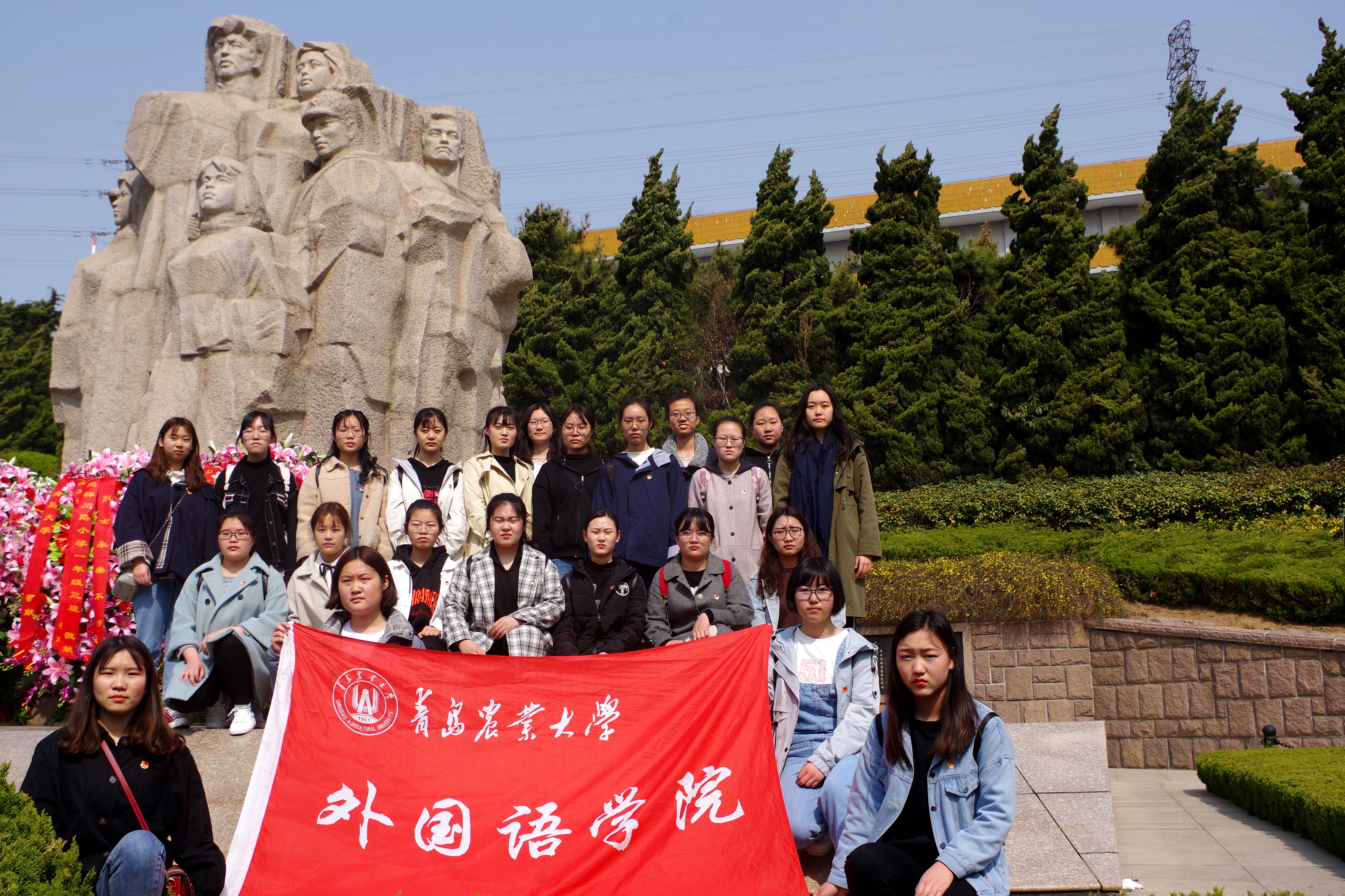 上午9时,缅怀活动在青岛市革命烈士纪念馆广场隆重举行。同学们怀着崇敬的心情,列队肃立在烈士群雕前,向在革命、建设和改革事业中英勇献身的先烈们默哀。随后,同学们瞻仰了烈士群雕及碑记,参观了纪念馆展厅,在历史图片和先烈遗物前驻足凝视,在聆听讲解和瞻仰事迹的过程中缅怀沉思。特别是当看到许多先烈在牺牲时是同学们的同龄人时,大家更加深切感受到先烈们为谋求民族独立、人民解放和国家富强、人民幸福而不懈奋斗、前赴后继的英雄壮举,更加深刻体会到今天幸福生活的来之不易。2016级英语专业学生丛田田表示,作为学生党员,要铭记革命历史,继承先烈遗志,自觉提高政治站位,加强政治学习,把个人的理想追求与国家民族的前途命运紧密结合起来,为实现“两个一百年”奋斗目标、实现中华民族伟大复兴的中国梦努力奋斗。