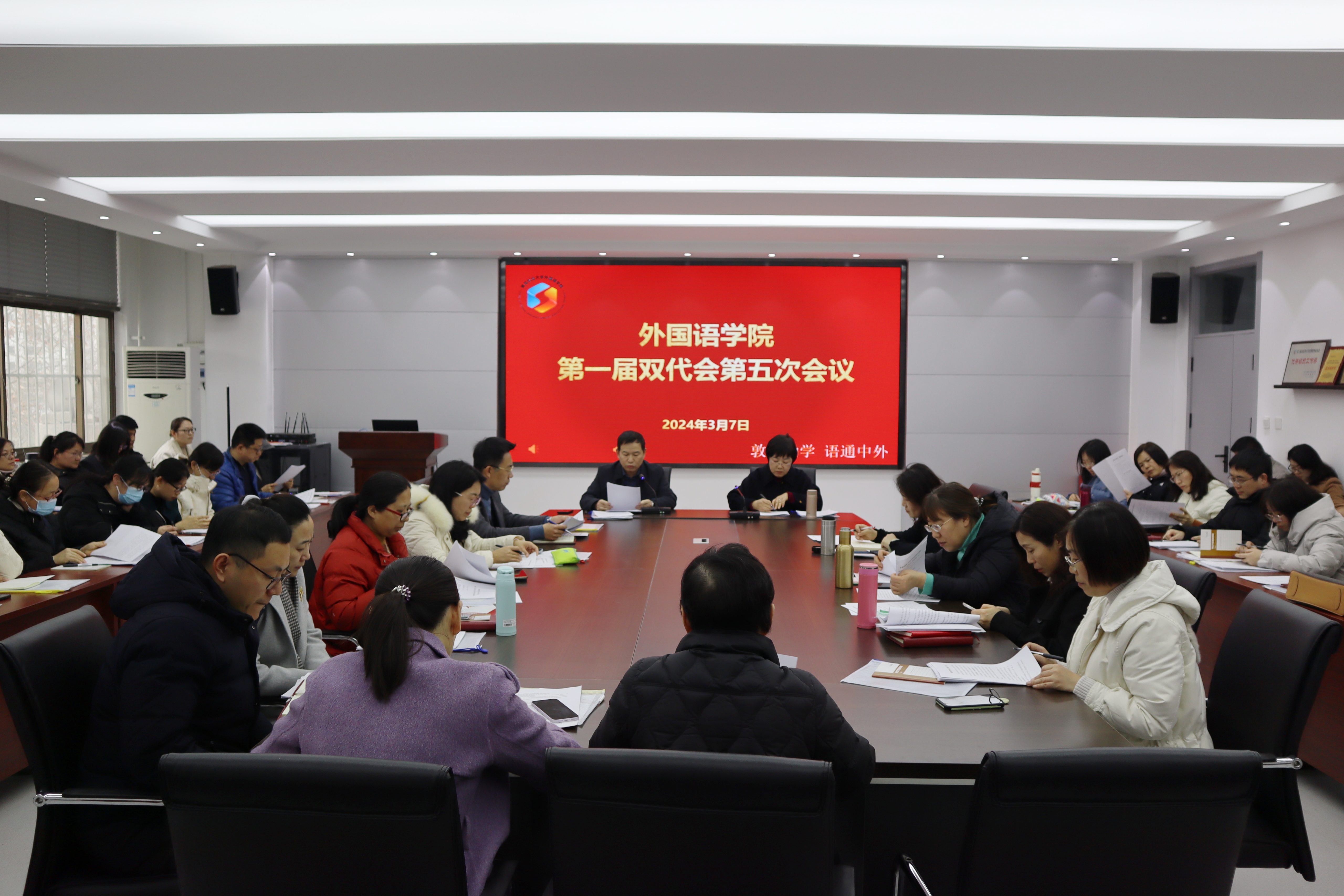 3月7日,William威廉英国一届双代会第五次会议在文经楼C220召开。学院党委书记王效仿主持会议,学院领导班子成员及全院教职工代表、工会会员代表参加会议。