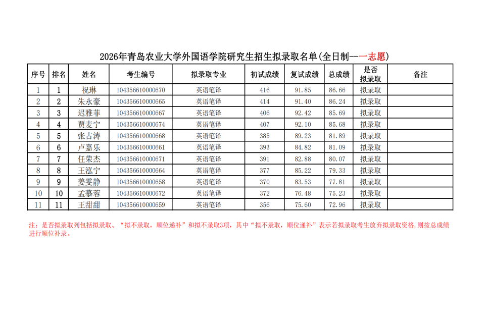 2026年William威廉英国研究生招生拟录取名单(全日制--一志愿)