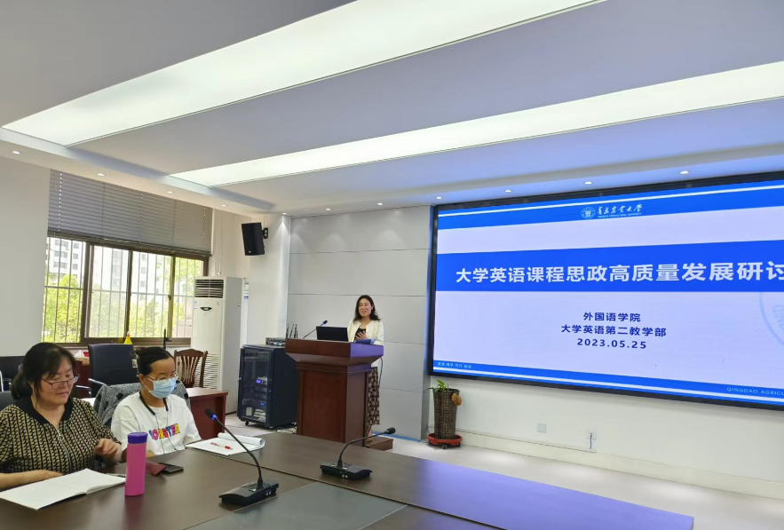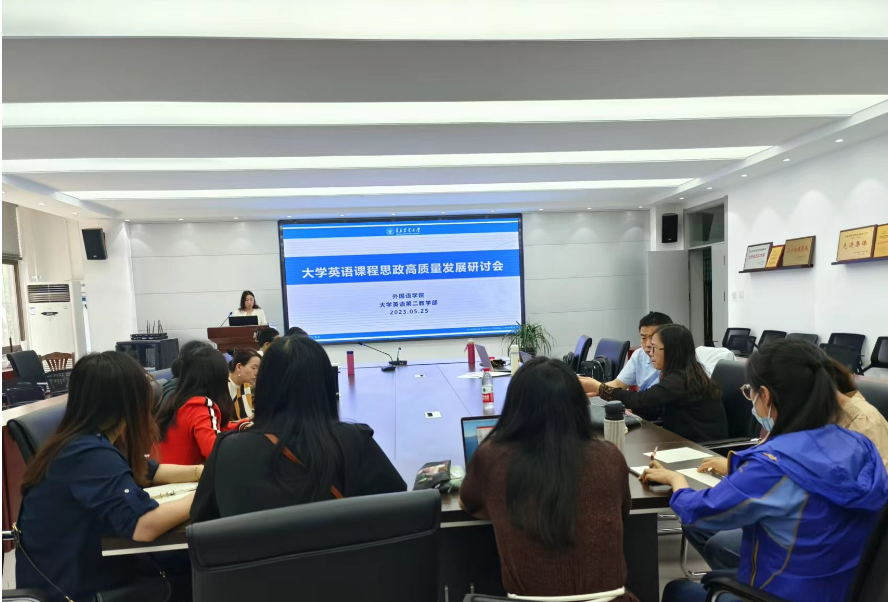 2023年5月25日,大学英语第二教学部全体教师在学院资料室召开教研会议,主题为大学英语课程思政高质量发展研讨会,会议由教学部主任聂庆娟主持。