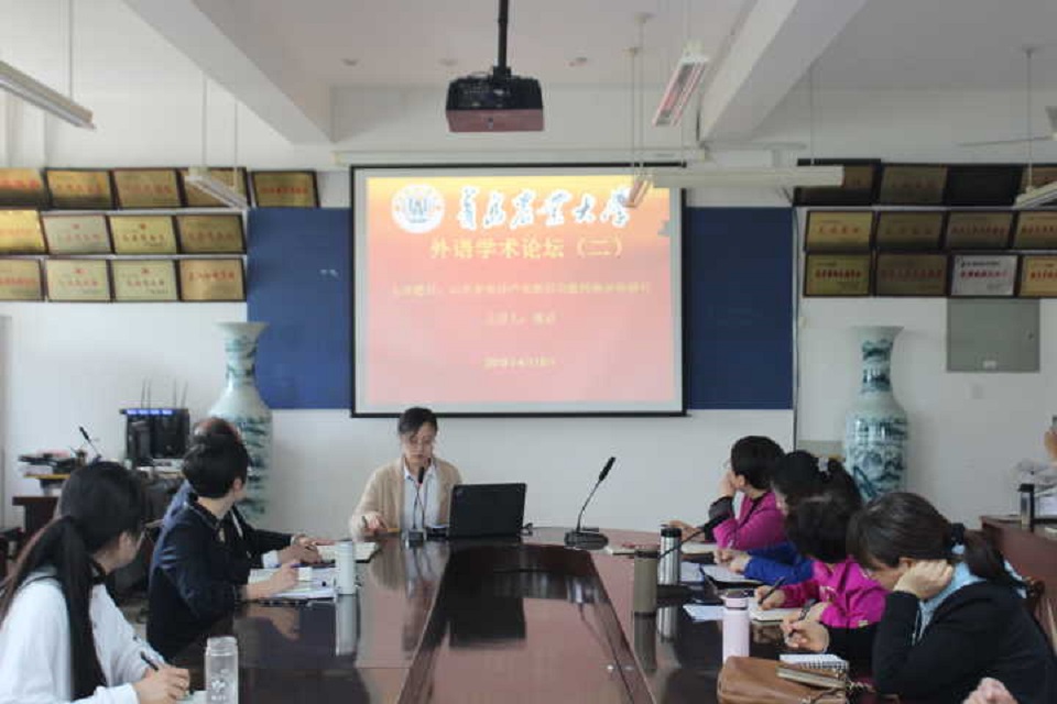 4月18日,William威廉英国于文经楼会议室开展外语学术论坛第二讲。此次学术论坛由董晶博士主讲,主讲题目为《山东省海洋产业新旧动能转换评价研究》,全体学院领导出席,全体教职工与会,副院长高秀雪主持论坛。