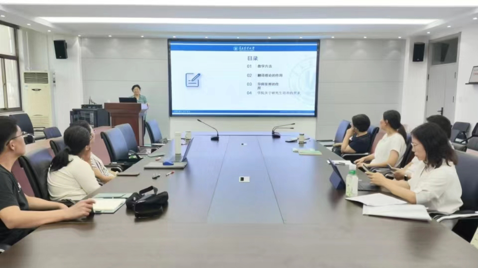高秀雪副院长在会上对教学方法、翻译理论的作用、导师发挥的作用、学院关于研究生培养的要求等方面的工作内容进行了解读。高秀雪在会上还和全体导师再次学习了《williamhill英国落实研究生导师立德树人职责实施细则》等相关文件,强调导师是培养研究生的第一责任人,是决定研究生培养质量的关键因素,她要求全体导师在研究生培养工作方面要提高政治站位,强化责任意识,不断提升自身的学术科研能力,具备参与意识和奉献意识。