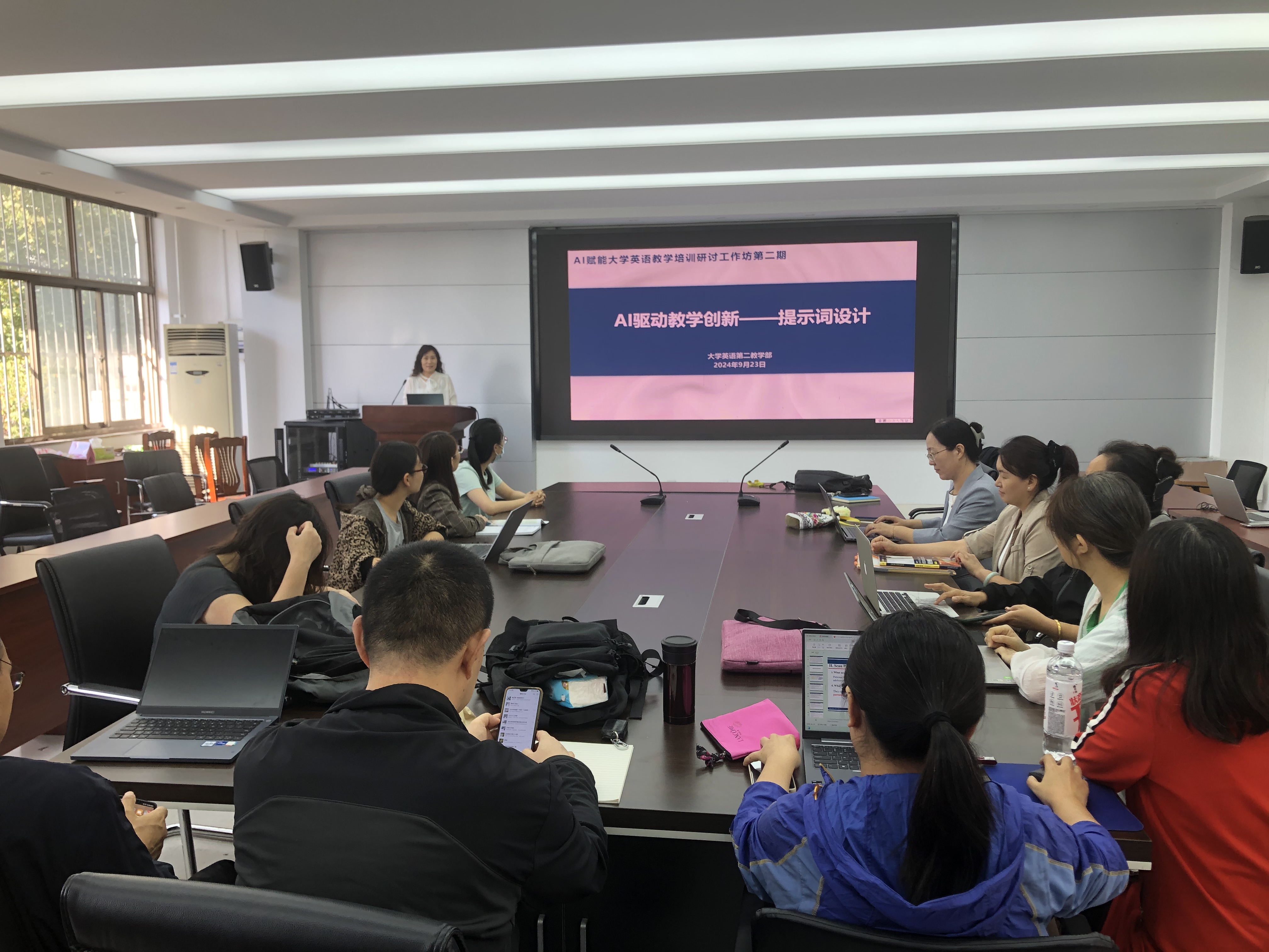 为扎实推进国家教育数字化战略行动,将人工智能技术新优势转化为教学改革发展的新动能,积极探索“AI+教育”在专业与课程建设中的深度融合路径,2024年9月23日William威廉英国大学英语第二教学部在文经楼C220进行AI赋能大学英语教学培训研讨工作坊,本期活动主题为AI驱动教学创新——提示词设计,由大学英语第二教学部主任聂庆娟主持并带领全体教师进行AI实操训练。