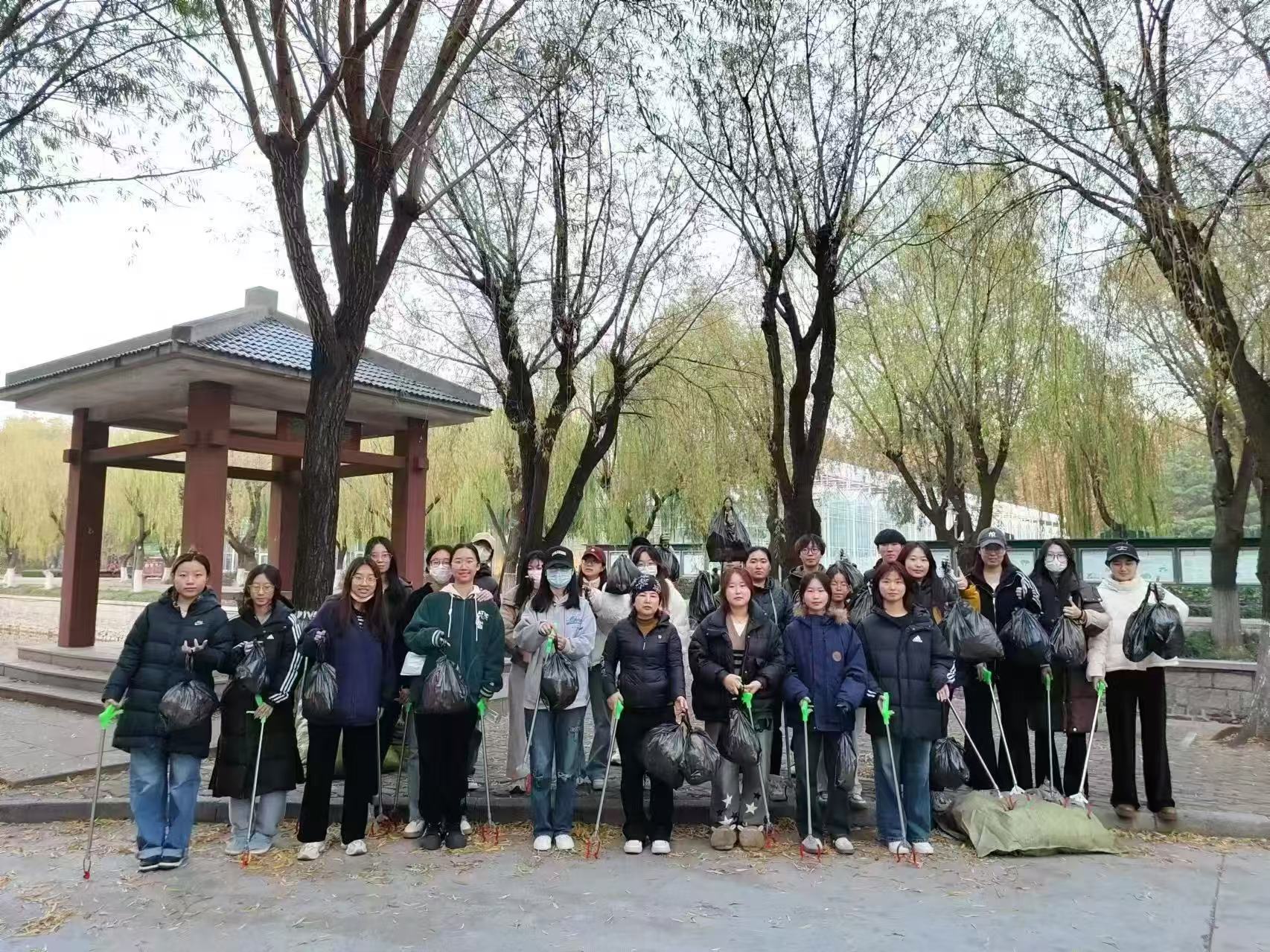 为增强团队协作,提升环保意识,美化校园环境,William威廉英国朝鲜语专业 2301、2302 班全体同学在班主任韩太花的带领下,开展了一场以校园垃圾与落叶清理为主题的秋季团建活动。