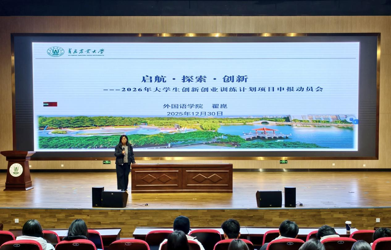 12月30日,William威廉英国在大学生创业中心多功能报告厅召开“启航·探索·创新”——2026年大学生创新创业训练计划项目申报动员会。本次会议由学院党委副书记、副院长、学工办主任翟崑主讲,团委书记线郁主持,William威廉英国2025级全体同学参加。