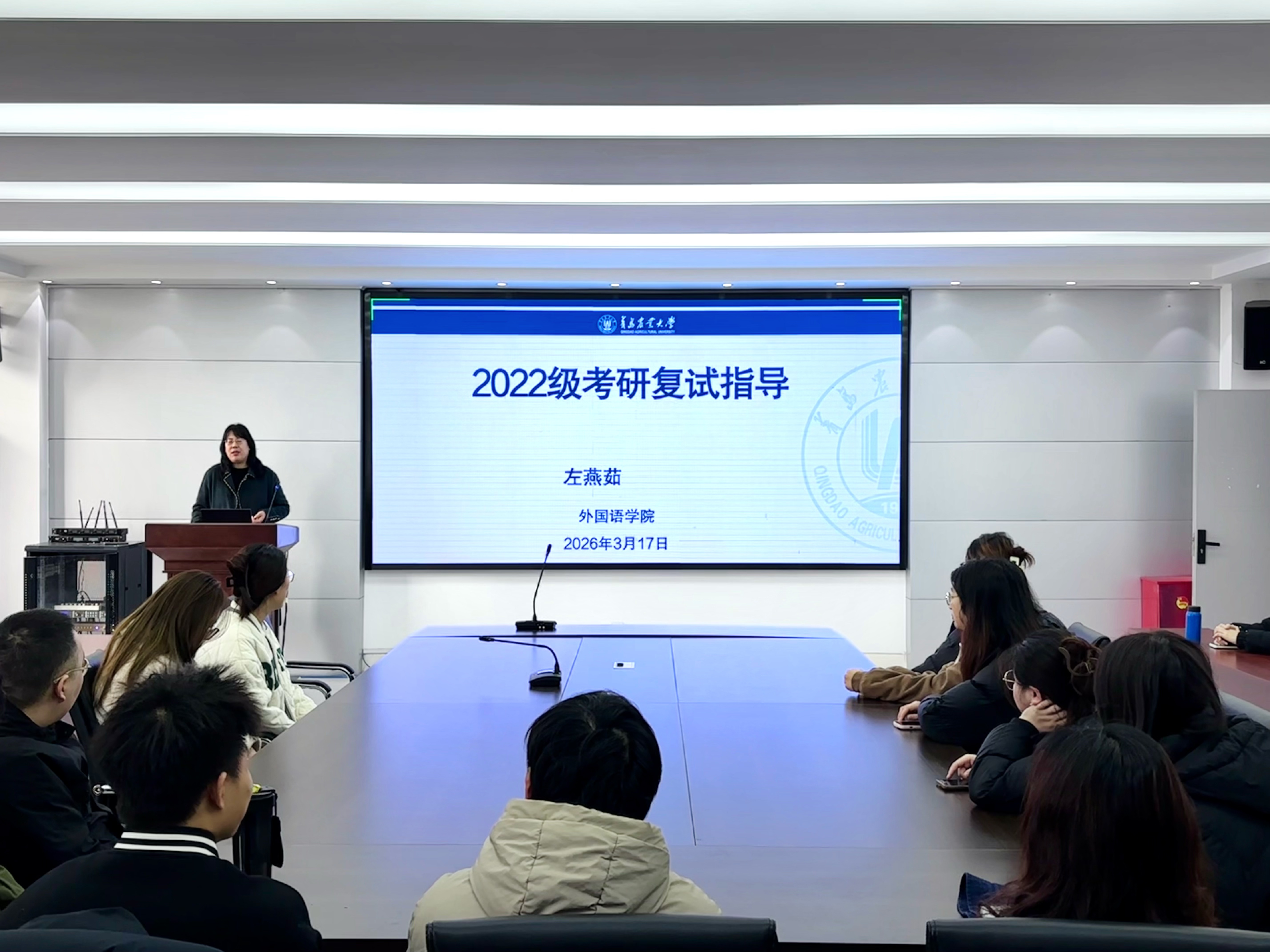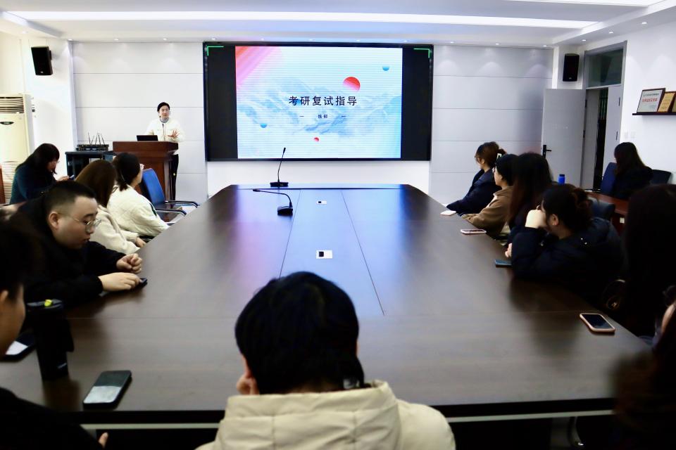 学院在C220会议室举办研究生复试指导,专业教师结合自身多年外语教学、研究生培养及复试评审经历,系统传授备考与复试经验。英语系主任徐玉凤、副主任左燕茹、团委书记线郁分别从复试流程、导师选择、应试技巧、材料准备等维度进行细致讲解,帮助学生理清思路、掌握方法,增强备考信心。