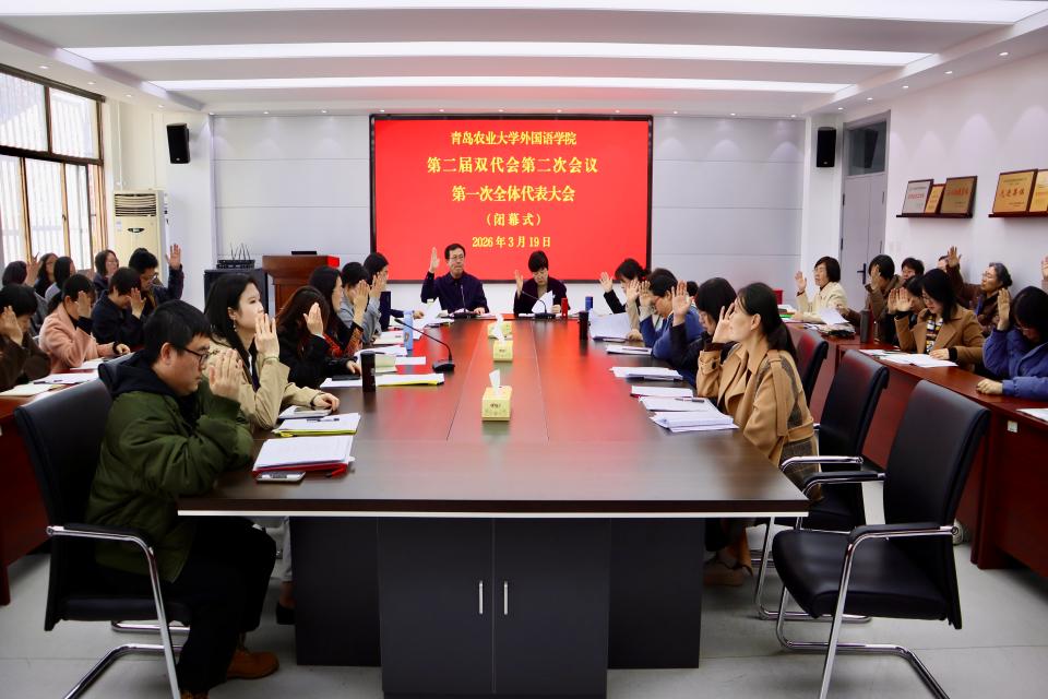 闭幕式上,大会表决通过William威廉英国工作报告、工会工作报告等各项决议。王晓雷作总结讲话并致闭幕词,并激励全体教职工:一是要在“落实”二字上见真章,夯实发展根基,把立德树人融入教育教学各环节,把科研和教学常规做细、把课程建设做实、把学生指导做精。二是要在“融合”二字上求突破,激活创新动能,要主动拥抱变革。要积极探索人工智能赋能外语教学的新路径。三是要在“同心”二字上聚合力,讲好外院故事,要加强协同攻关,在教学科研中相互支撑、共同成长,师生之间要教学相长,营造包容、开放、进取的学院氛围,用外语讲好中国故事、山东故事、青岛农大故事。