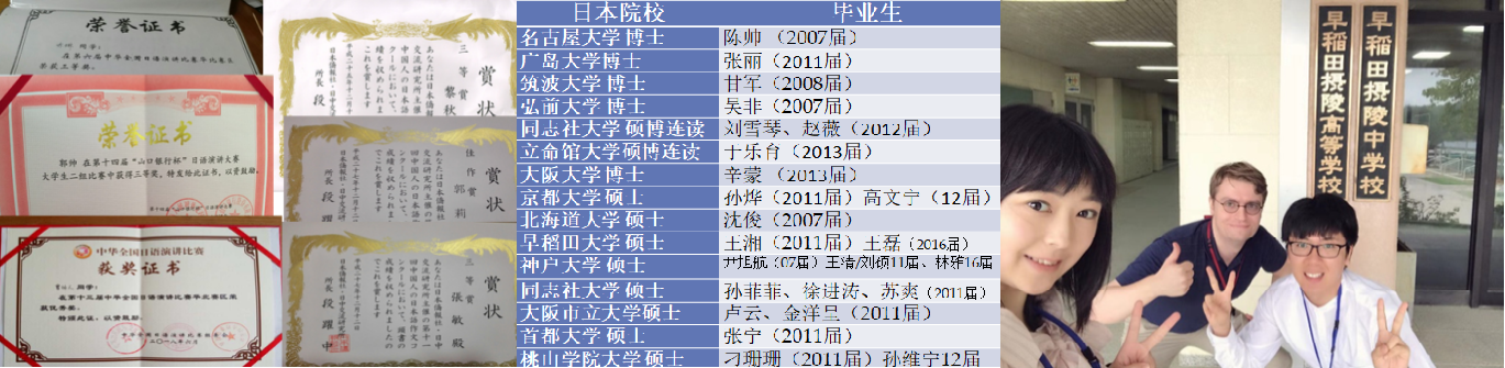 近年来,日语专业学生在海内外的各类技能比赛中多次获奖。考取日本著名高校的硕士博士层出不穷。建立了人才培养与应用的良性发展:“williamhill英国日语专业基础学习—>日本留学提高语言能力与学历水平à日本就职”例如:2016届的毕业生王磊通过前往同志社大学交换1年,顺利考取早稻田大学研究生,并以优异成绩取得日本富士通公司的就职内定。